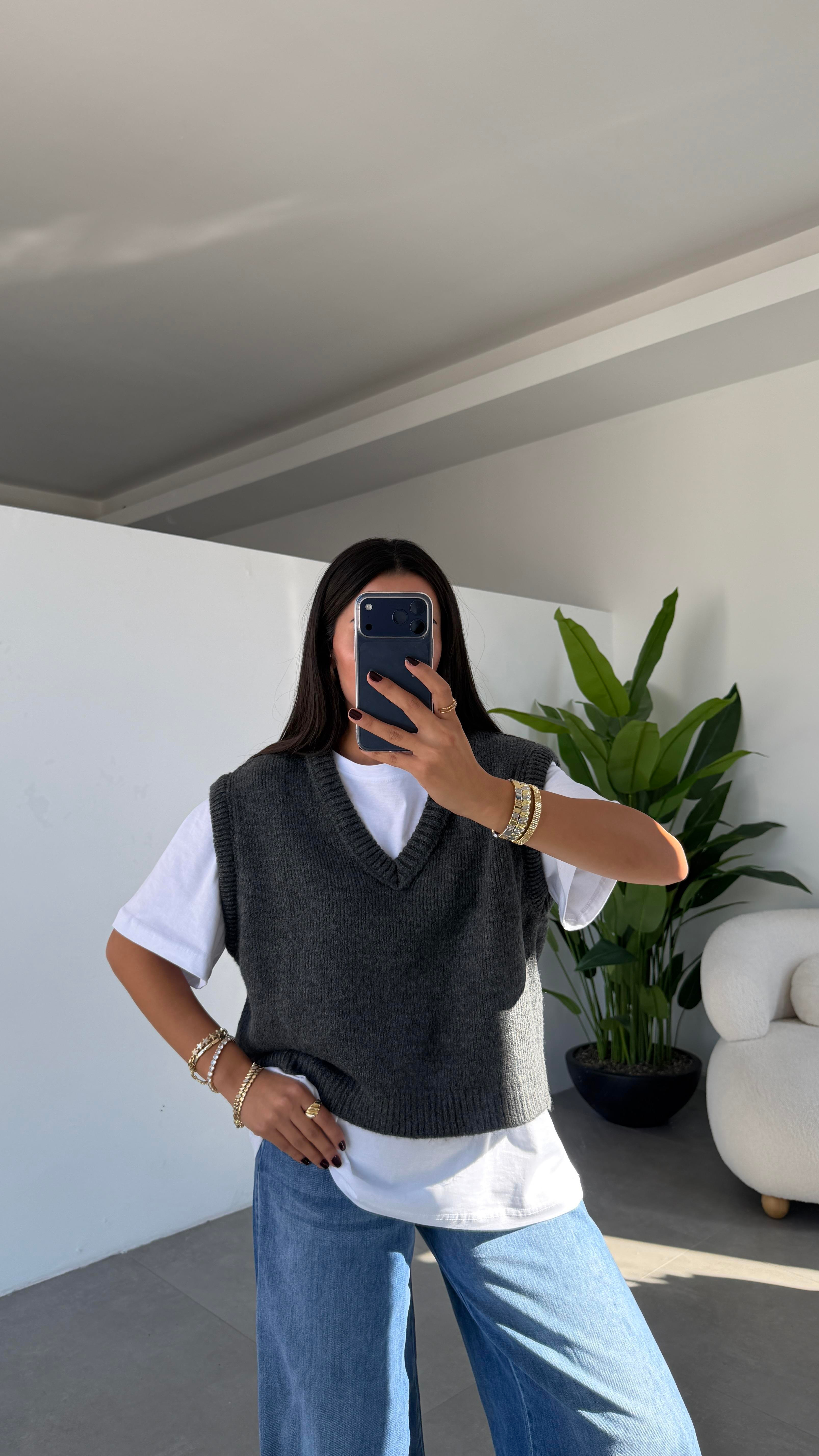 Kombinlerin en kurtarıcı parçası burada! Oversize kesimiyle hem rahat hem de trend görünen bu V yaka triko süveter, ister gömlekle ister basic tişörtle kat kat giyime çok uygun.
