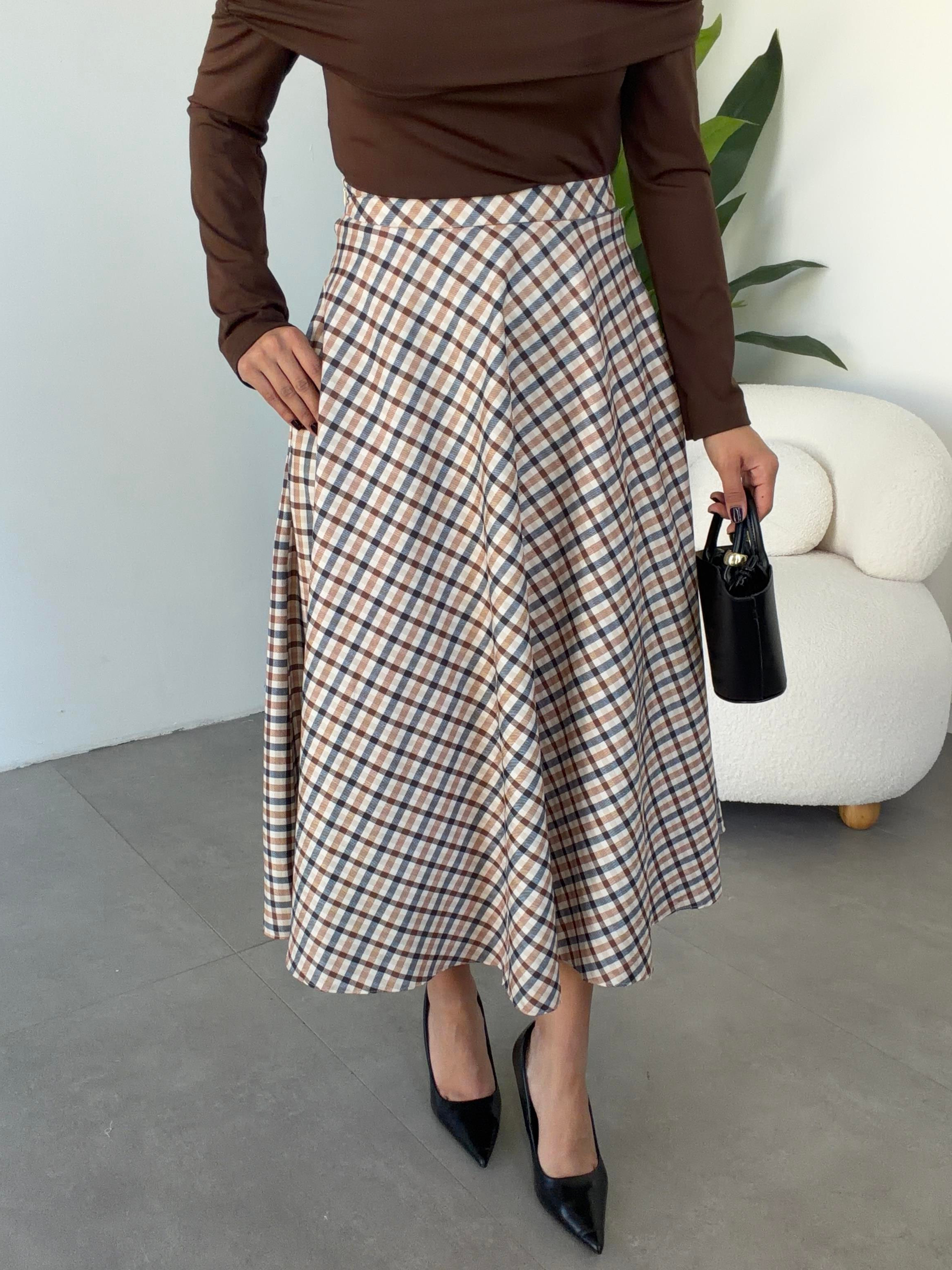 Klasik kare desenin modern yorumuyla tasarlanan bu dökümlü A kesim etek, hem konforlu hem şık görünmek isteyenler için ideal. Günlük kombinlerde sneaker ile spor bir hava yakalayabilir, bot veya topuklu ile daha şık bir stil oluşturabilirsiniz. • S, M, L beden uyumludur • Yüksek bel, toparlayıcı form • Dökümlü ve hareketli kumaş • Astarsız – iç göstermez