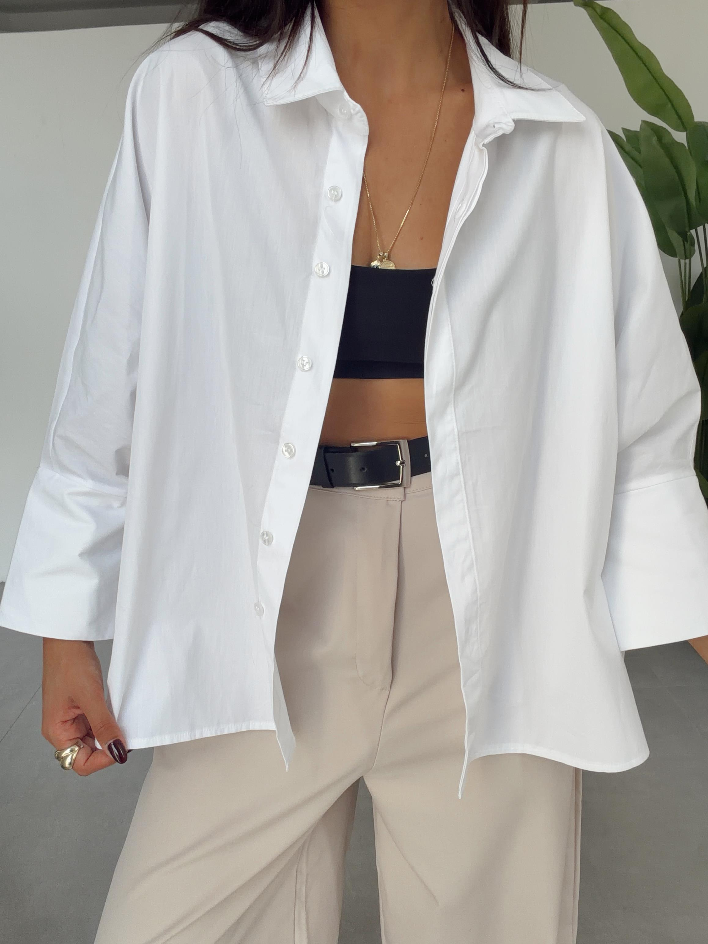 Oversize Basic Beyaz Gömlek – Standart Beden