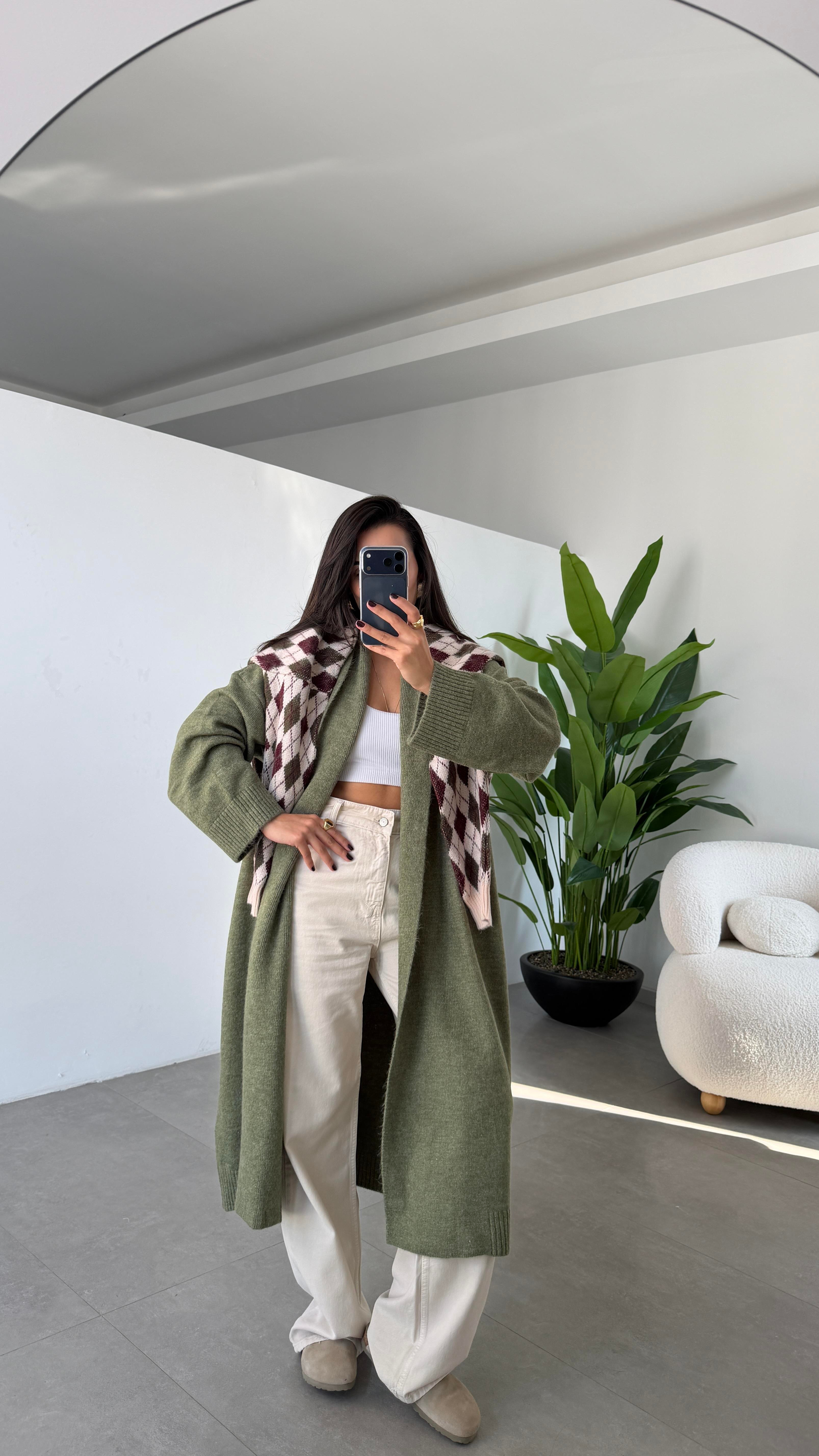 Yumuşacık dokusu, dökümlü duruşu ve zamansız kesimiyle kış gardırobunun vazgeçilmez parçası. • Oversize uzun triko hırka • Dört renk: Ekru / Siyah / Kahve / Haki • Esnek yapısı sayesinde 36-46 arası bedenlere uyumludur • Hem ev kombinlerinde hem şehir stilinde rahatlıkla kullanılabilir • Kışın mont altına, baharda tek başına