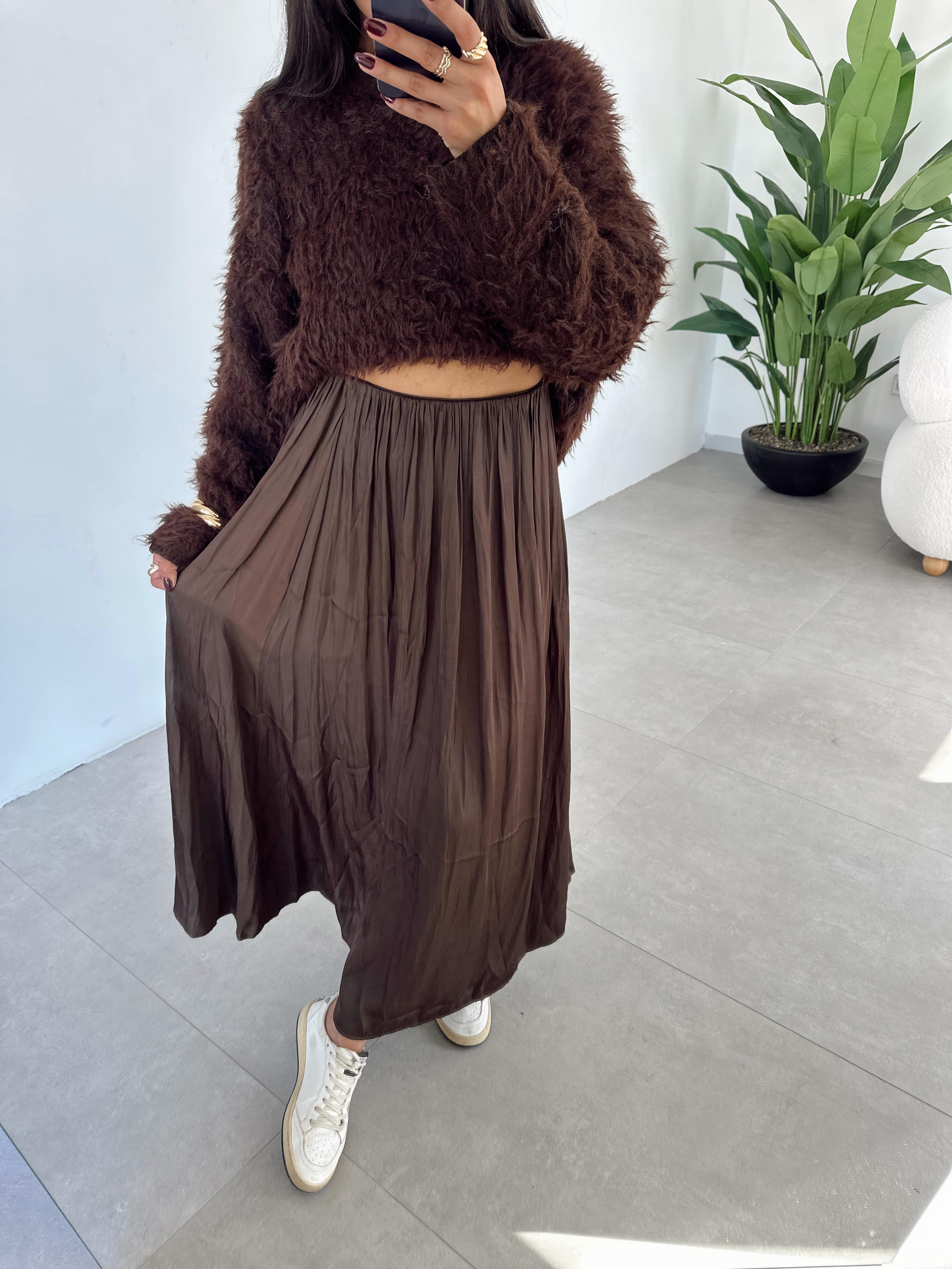 Kahve Beli Lastikli Saten Etek