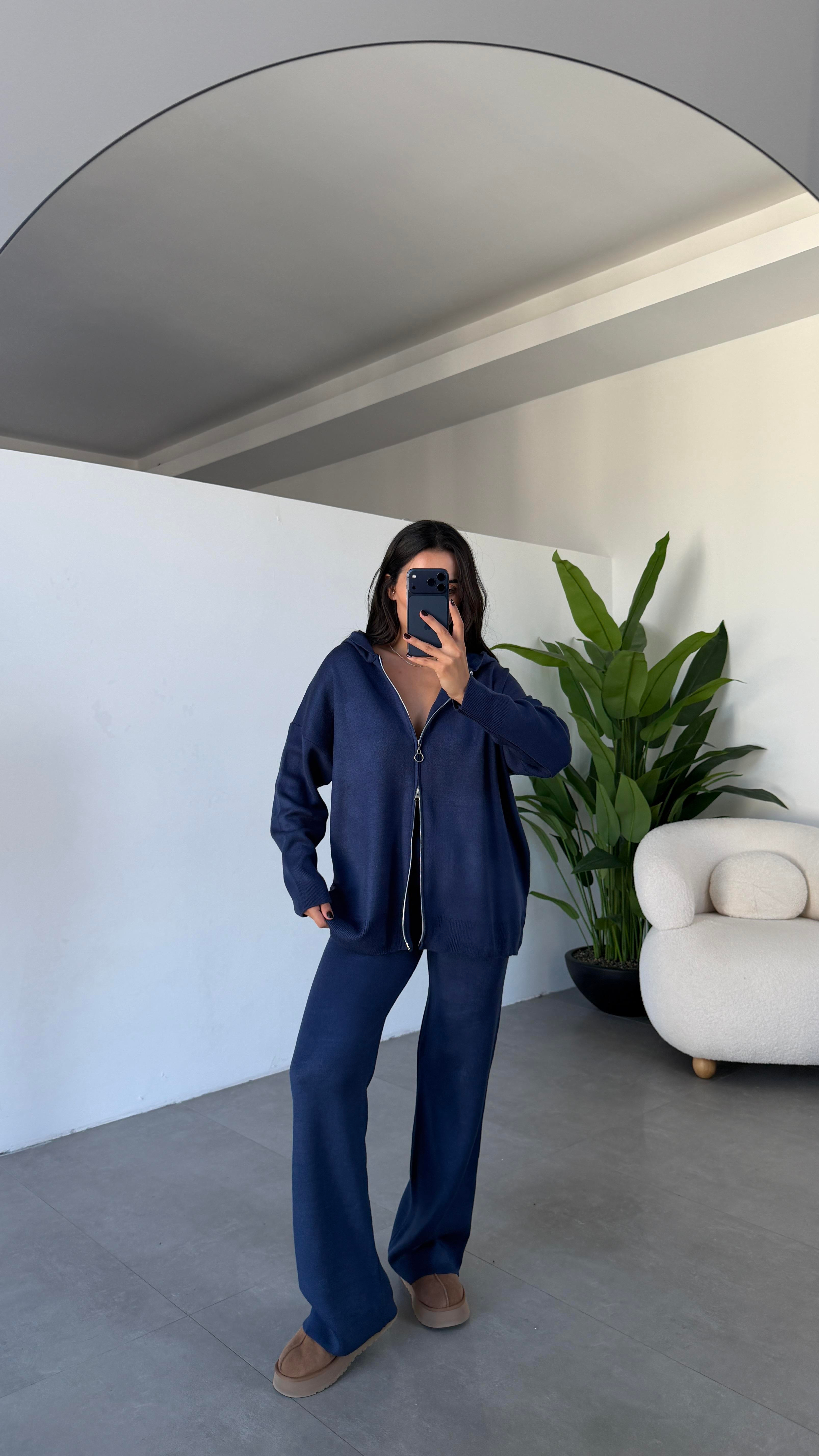 Koyu İndigo Triko Hırkalı Takım