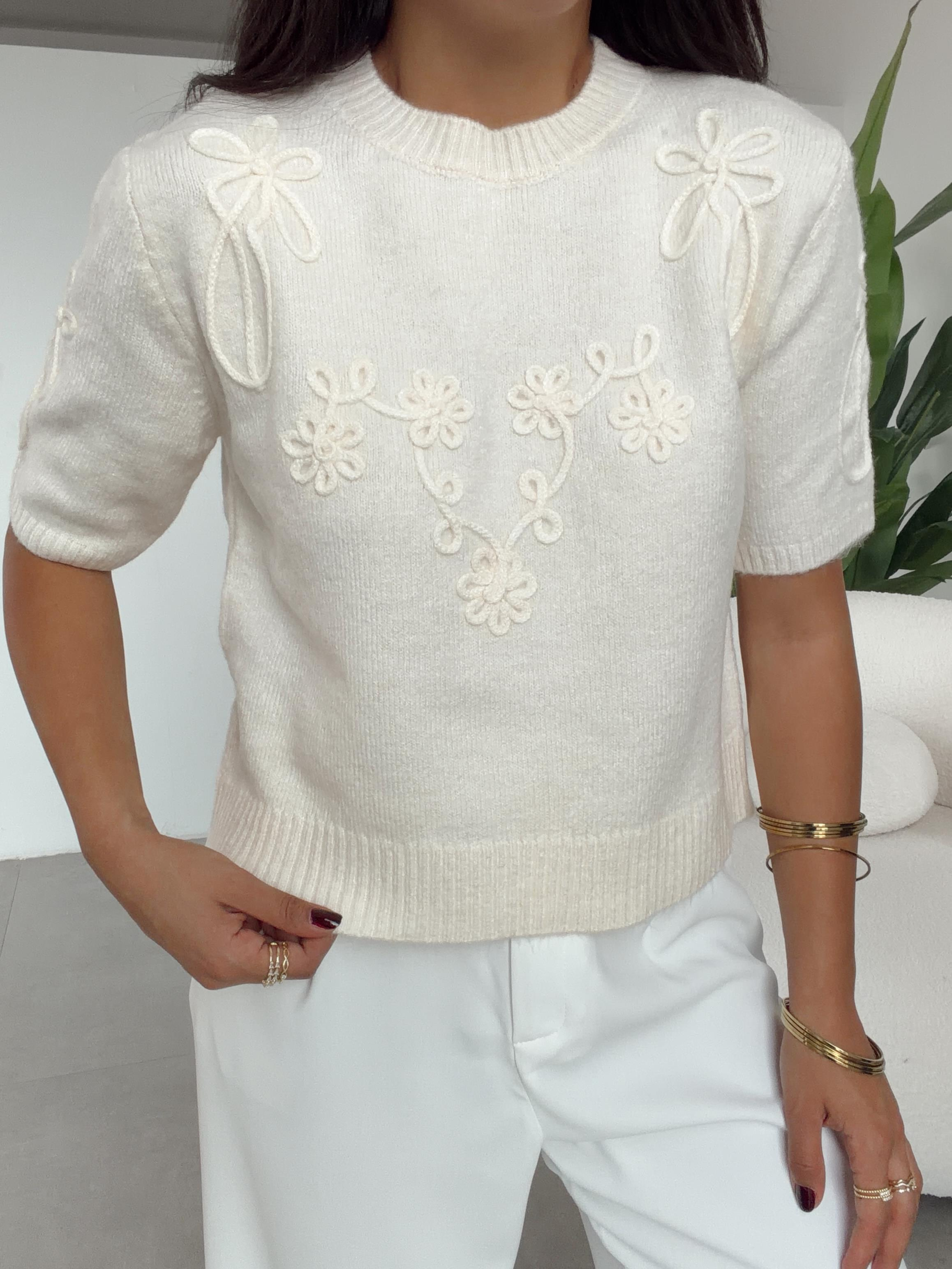 Krem Kısa Kol Suzene Kazak