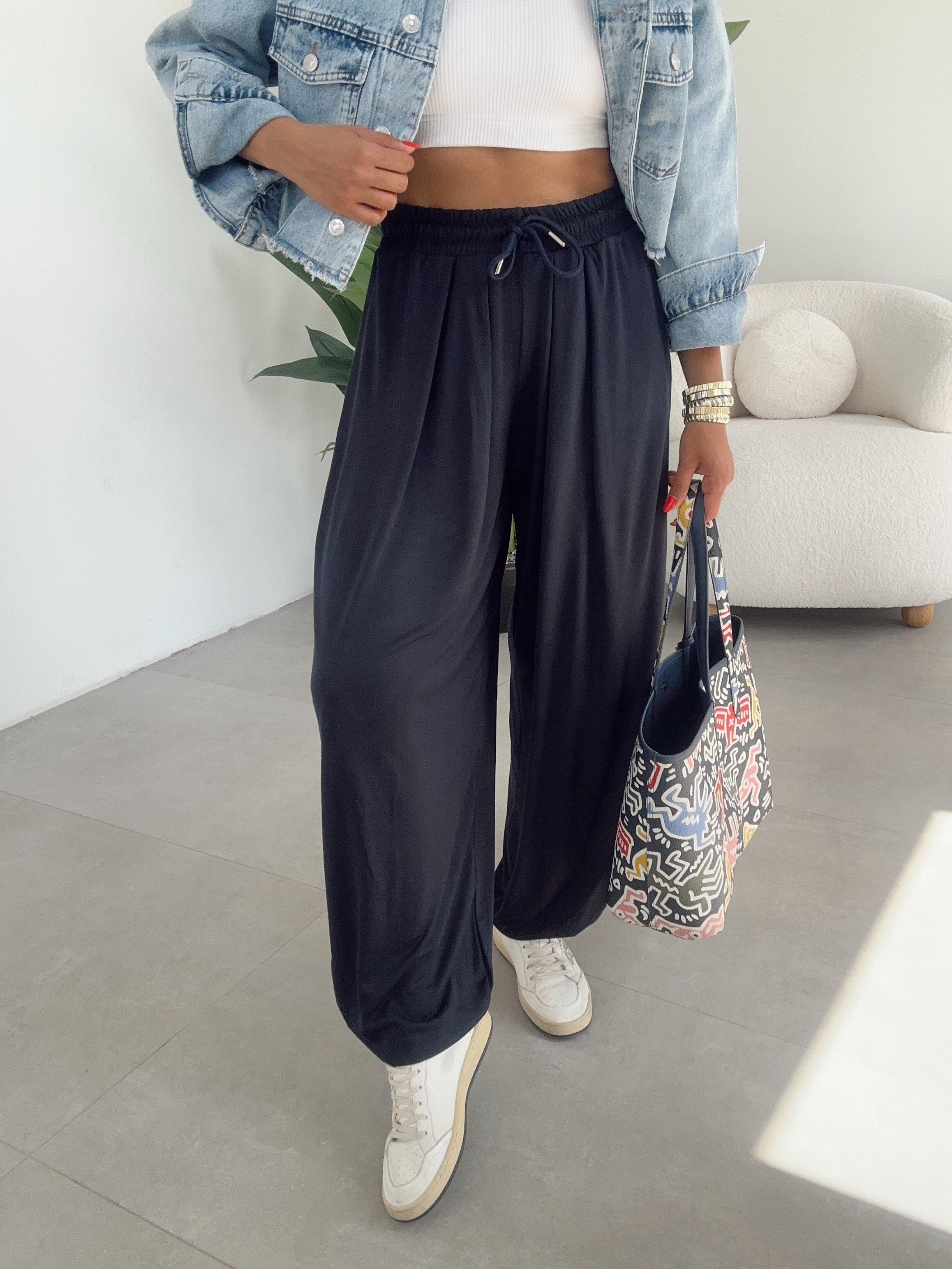 Liya Lacivert Modal Kumaş Tasarım Şalvar