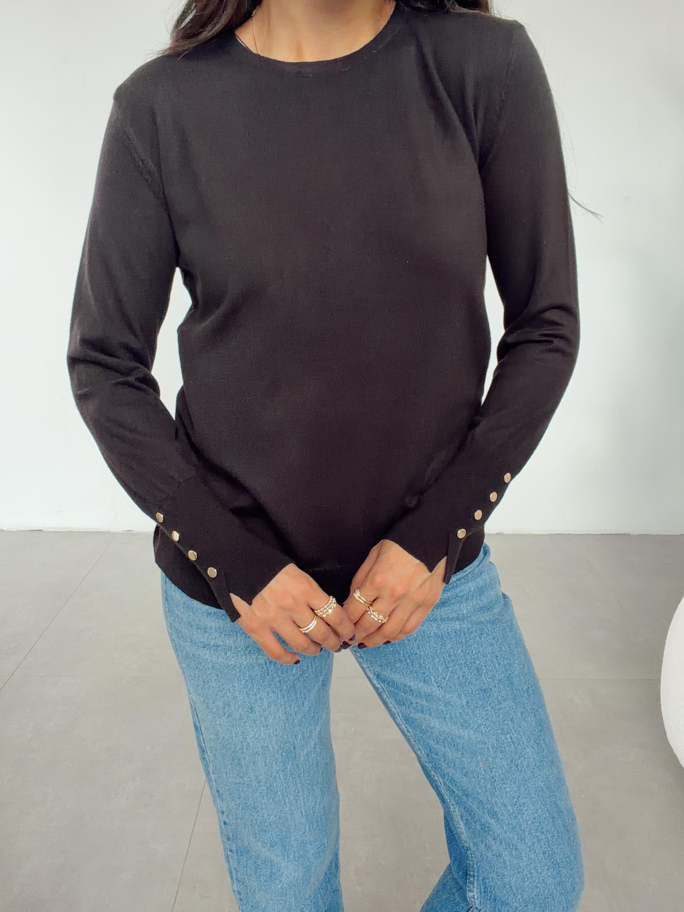 M-D Siyah Kolları Çıtçıt Detaylı Triko