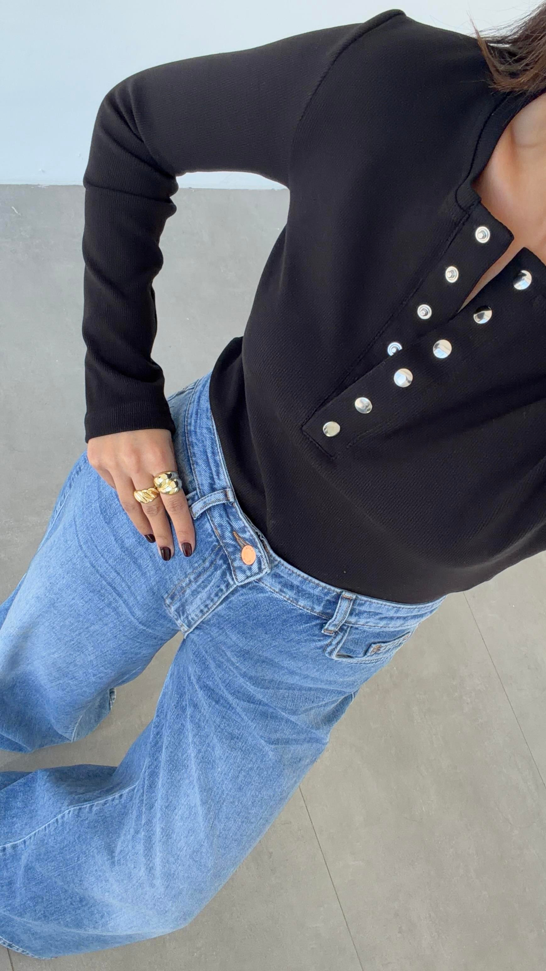 Ribanalı Çıtçıtlı Uzun Kol Basic Bluz