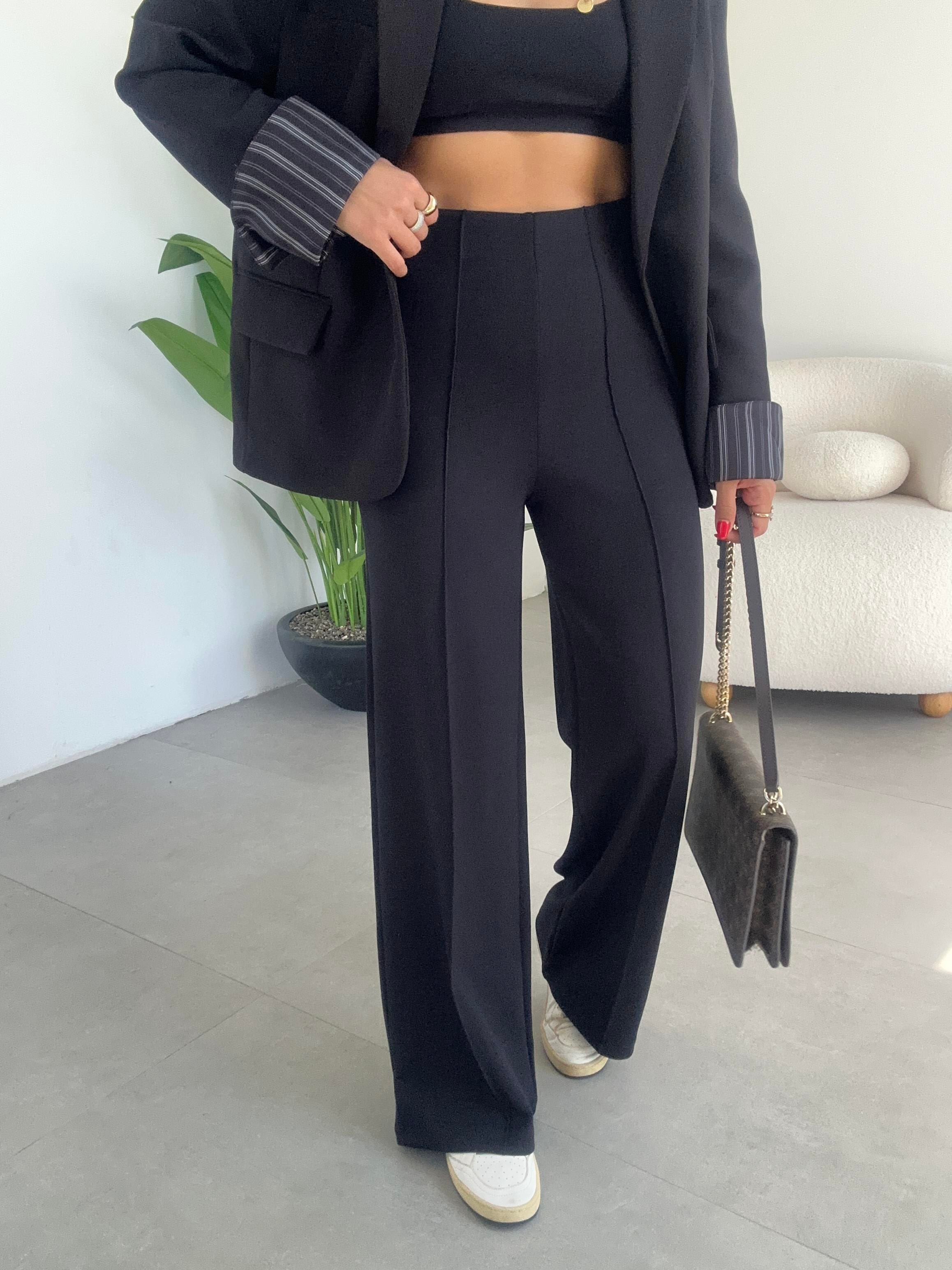 Siyah Modal Önü Çimalı Palazzo Pantolon