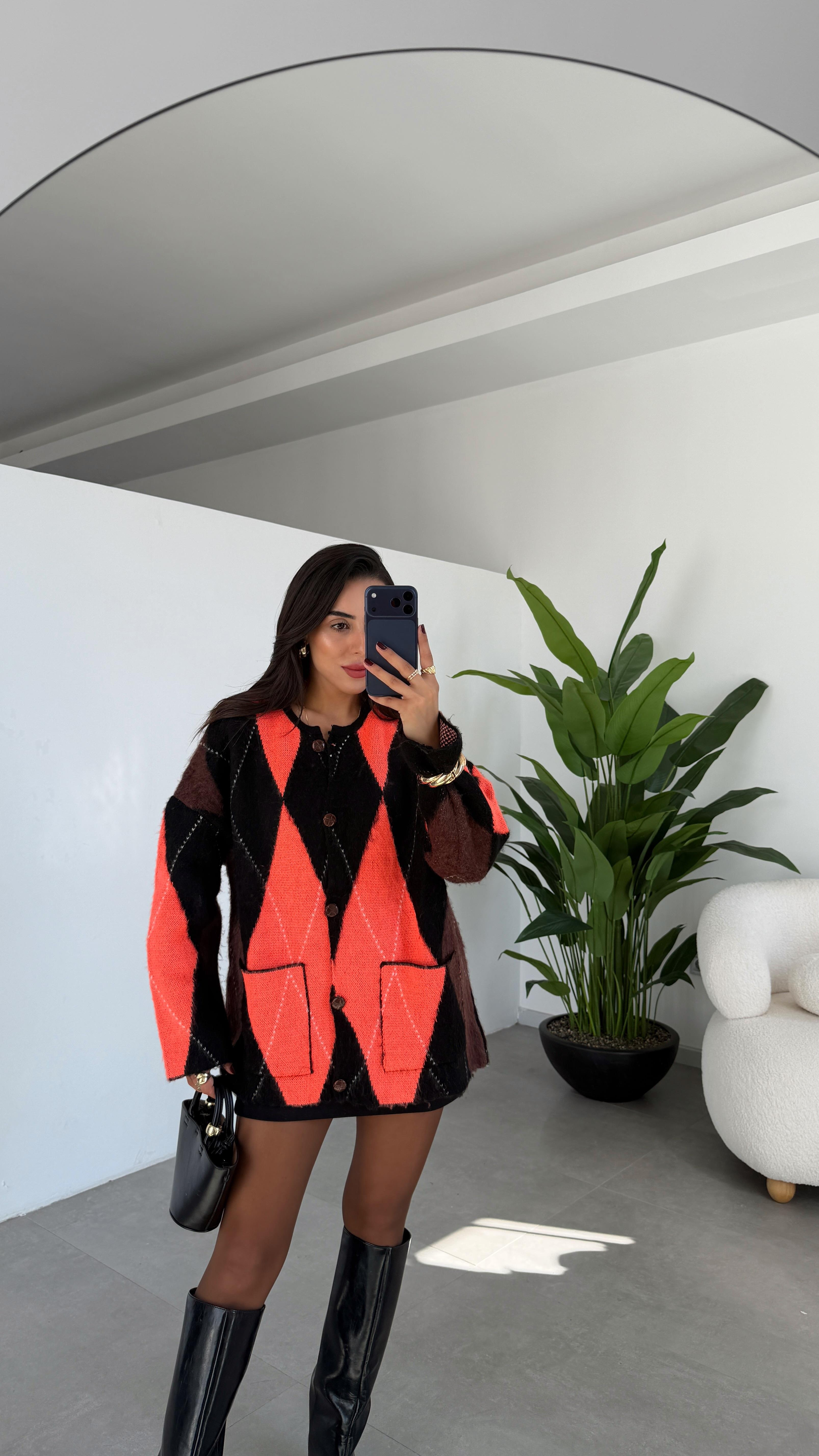 Oversize kesimiyle konforu ve şıklığı bir araya getiren, argyle (baklava desenli) triko hırka modeli. Yumuşacık dokusu sayesinde soğuk havalarda sıcacık tutarken, statement deseniyle her kombine tarz katar. • Standart beden – 36/38/40/42 uyumludur • Relax oversize kalıp • Düğmeli ön kapama • Fonksiyonel cep detaylı • Yumuşak triko kumaş (kaşmir hissiyatlı)